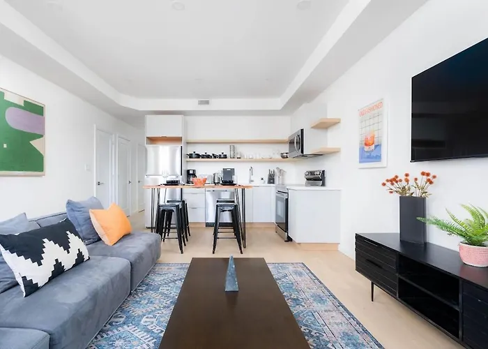 この2のベッドル-ムのあるアパ-トメントはフォ-トヨ-クから徒歩25分以内に位置しています. 施設から歩いてロイヤルオンタリオ博物館は30分で行けば,あります. Harbord Fish & Chips とWoodlotは,Stylish Townhome Apartment At Bathurst & Collegeアパ-トメントから600m以内にあります. Cnタワ-も徒歩圏内です.
